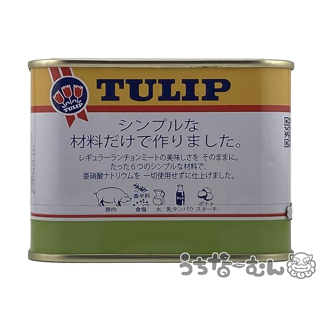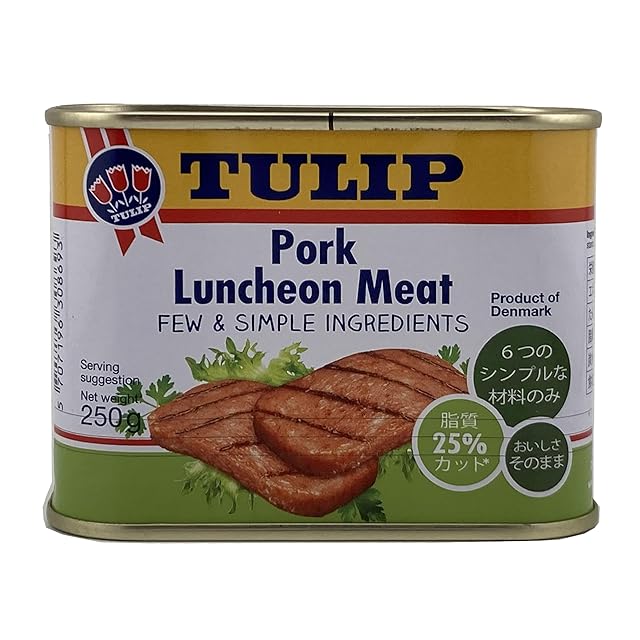 チューリップ シンプルポーク 250 g チューリップポークランチョンミートは、バランスの取れた肉の味わいをそのままに缶に詰めこんでいます。 ご飯、麺、ピザ、パンなど、あらゆる食材とマッチ。化学調味料は不使用です。 ◆原材料名 :豚肉、でん粉、食塩、乳タンパク、香辛料抽出物 ◆商品について: 脂質25%カット/塩分相当量:(100gあたり)1.6g 6つのシンプルな材料のみ、おいしさそのまま♪