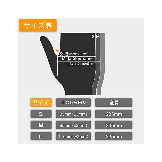 ✅ 【安心・安全】食品衛生法に適合しているため料理用に最適なニトリル手袋。違うサイズのオプション,S、M、Lの3サイズから選べます(長さ23cm、厚さ0.07mmで、)。