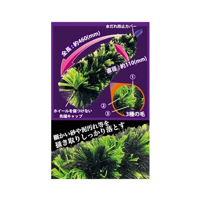 商品名:プロスタッフ(Prostaff) 洗車用品 ホイールブラシ タイヤブラシ ホイールクリーナー 奥までしっかり届く 三種混毛 水はね抑制 モンスター サーベラス グリーン 全長460mm P202