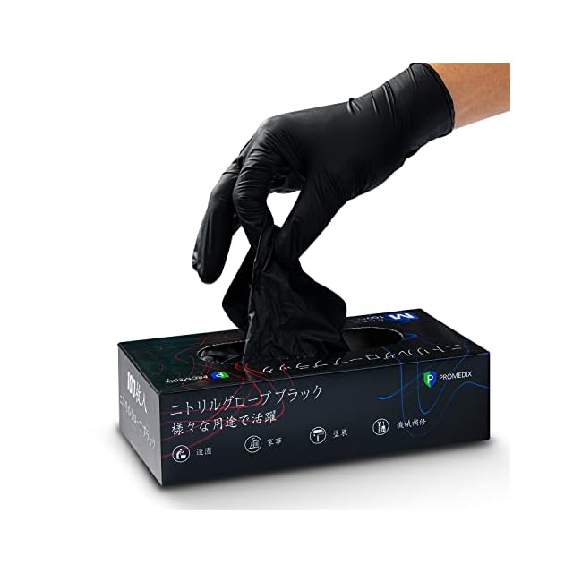 [PROMEDIX] ニトリル手袋 使い捨て手袋 粉なし 食品衛生法適合 100枚入 ブラック (L)