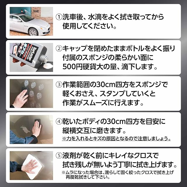 用途:塗装面の水アカ汚れ落とし、小キズ消し、ワックスの下地処理用
