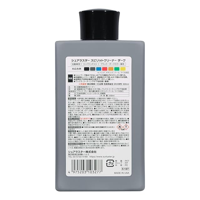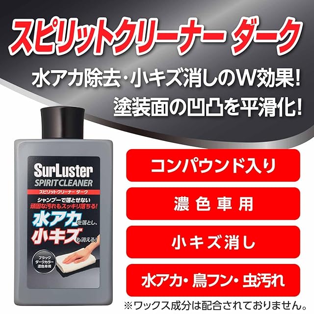 商品名:SurLuster(シュアラスター) スピリットクリーナー ダーク 濃色車用 シリコーン 洗車 水アカ除去や小キズ埋め コンパウンド ソリット メタリック パール マイカ 鳥フン 虫 S-127