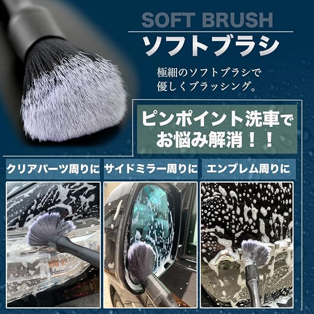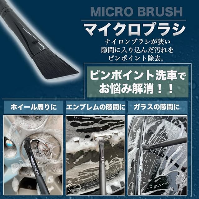 ✅【マイクロブラシ】:車のエンブレム、レター、ヘッドライトの隙間、車体の隙間など汚れをピンポイントで除去できます。