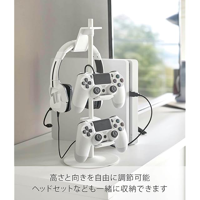 山崎実業(Yamazaki) ゲームコントローラー収納ラック ホワイト 約W17XD17XH38.5cm スマート 置いたまま充電可能 コントローラーケース 5088