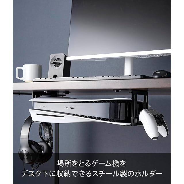 山崎実業(Yamazaki) 可動式 デスク下 ゲーム機ホルダー ブラック W7×D16.5×H12cm(1つあたり・調節ネジ含まず) スマート smart ゲーム機収納ラック PS5/PS5 Pro/PS5 Slim対応 10190