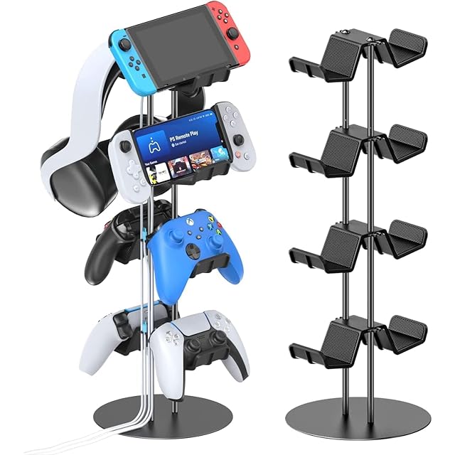【幅広い互換性】ゲームコントローラー収納ラックは、PS5 Pro / PS5 Slim / PS5 / PS4 / PS3 / PS2 / Xbox One / Xbox Series X / S / Xbox 360コントローラーおよびSwitch Proコントローラーに適用し、最大8つまで収納できます。ヘッドホンも収納できます。