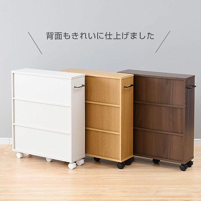 商品名:山善(YAMAZEN) 本棚 スリム (キャスター付き 本棚) 幅58×奥行17×高さ68.5cm 取っ手左右付け替えOK コミック (まんが) 収納目安105冊 組立品 ウォルナット CCW-7055CR(WL)