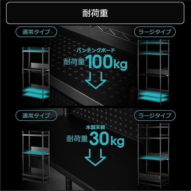 棚板にスチールプレートを採用し、メタルシェルフと比べ安定感を向上。