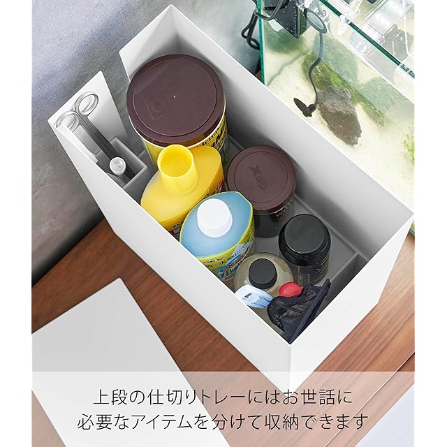 商品名:山崎実業(Yamazaki) 【 完成品 】 水槽横 収納ボックス ホワイト W16×D30×H36cm タワー tower 蓋付き 二層式 ケーブルボックス 1891