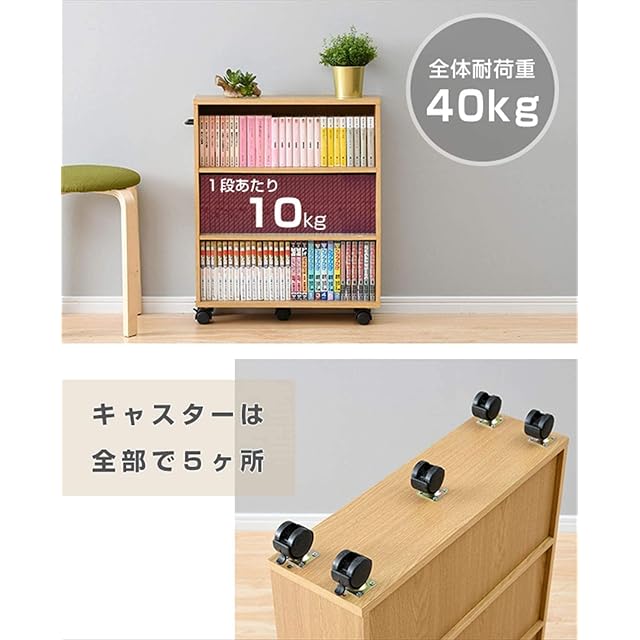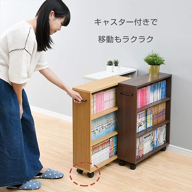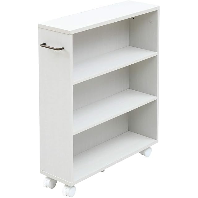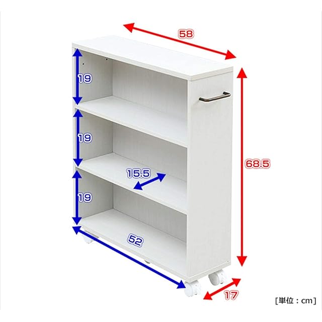 商品名:山善(YAMAZEN) 本棚 スリム (キャスター付き 本棚) 幅58×奥行17×高さ68.5cm 取っ手左右付け替えOK コミック (まんが) 収納目安105冊 組立品 ジョイホワイト CCW-7055CR(JW)