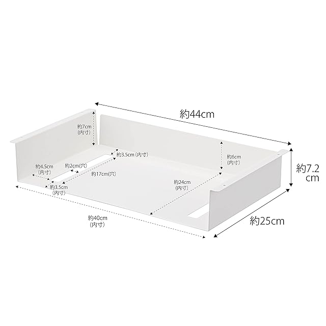 ■サイズ:約44×25×7.2cm、■素材:本体/スチール(粉体塗装)、■耐荷重:約4kg、■付属品:木ネジ×4、■カラー:ホワイト