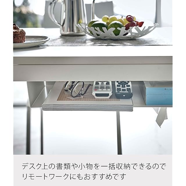 商品名:山崎実業(Yamazaki) テーブル下 収納ラック ホワイト 約W44XD25XH7.2cm タワー ティッシュ リモコン 一括収納 5481