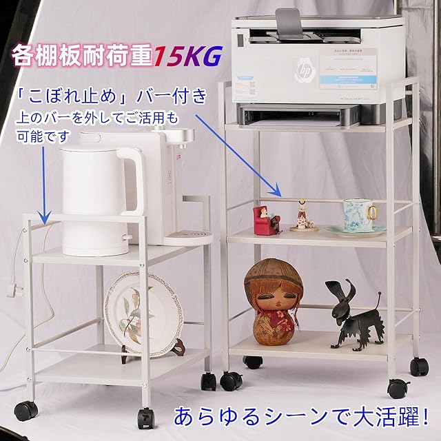 商品名:【再入荷 特価】Secchuu スチールラック 本体3.6kg 総耐荷重45kg 幅43×奥行30×高さ76cm 収納ワゴン プリンター台 PS5 横置き スタンド サイド収納 ストッパー付きキャスター 棚板1枚耐荷重15KG (ホワイト, 3段)