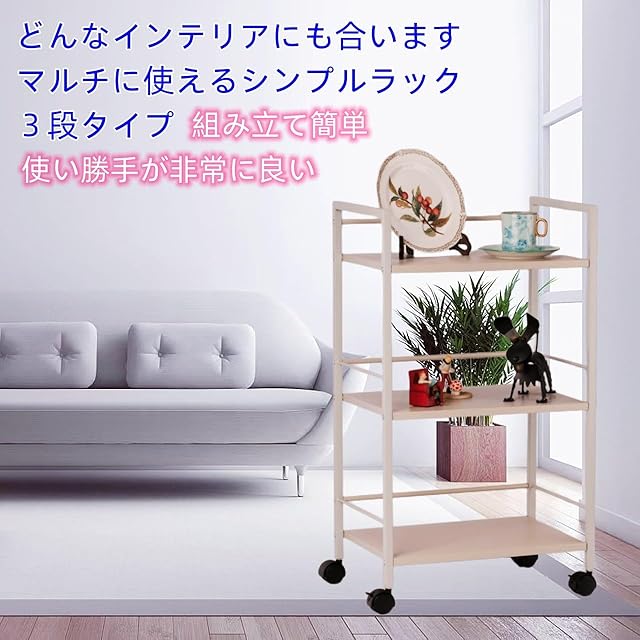 ●組立品です●組立時間:約10-20分●すっきりとしたコンパクトラック●リビング、キッチン周り、サニタリー周り、事務商務用などどこでも使えるマルチデザイン●外寸:幅43 奥行30 高さ76cm●棚板サイズ:幅40 奥行28.5 (こぼれ止め高さ)6cm●棚板間高さ:26cm●棚板耐荷重:15kg(1枚あたり)●全体耐荷重:45kg●キャスター4個のうち、ストッパー付き2個(前輪のみ)