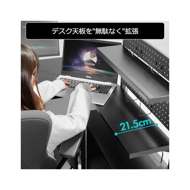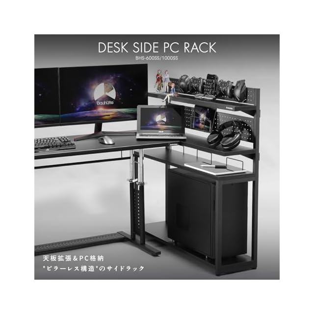 商品名:Bauhutte (バウヒュッテ) デスクサイドPCラック BHS-1000SS-BK 『天板拡張&PC格納 "ピラーレス構造"のサイドラック』 (幅100 × 奥行き27.5 × 高さ106cm) ブラック