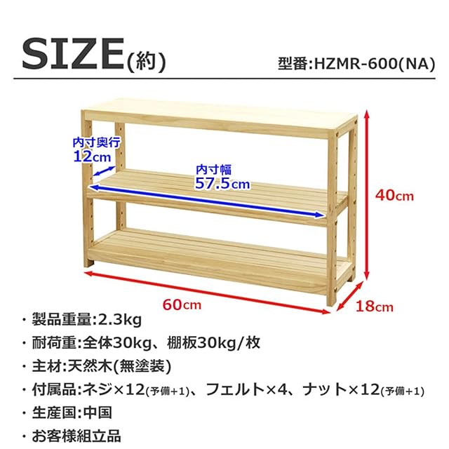 商品サイズ(約):幅60×奥行18×高さ40cm