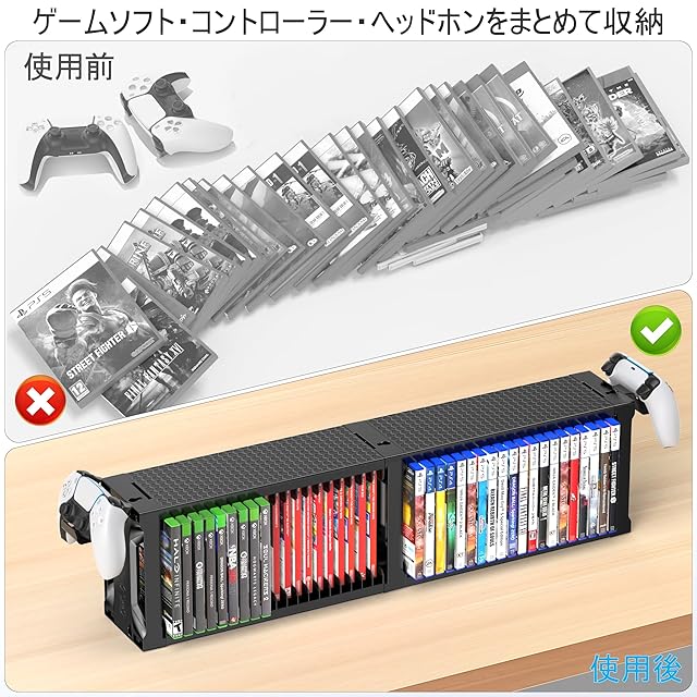 ゲームソフト 収納 スタンド 2層 40枚 PS5/PS4/Switch/XBX ディスク収納 ラック ヘッドホン コントローラー スタンド 省スペース 横置き 縦置き 壁掛け ゲームカード タワー 簡単組立 大容量