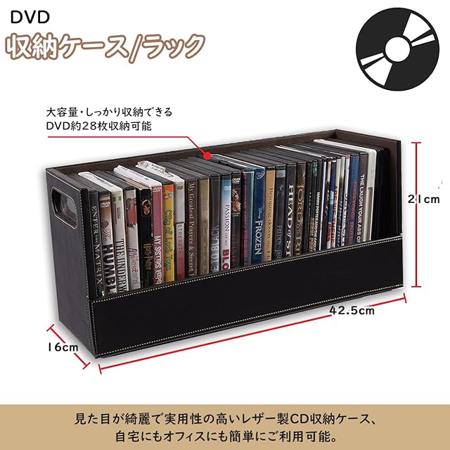 【洗練されたデザイン】高級感のあるレザーを使用したCDホルダーは、テレビキャビネットの横やデスクの上など、どこに置いてもシックでスタイリッシュな印象を与えてくれ、どんな家のインテリアにもマッチします。 また、CDホルダーには丈夫な取っ手が付いているので、簡単に手に取って持ち運べ、好きな場所に移動させることができます。
