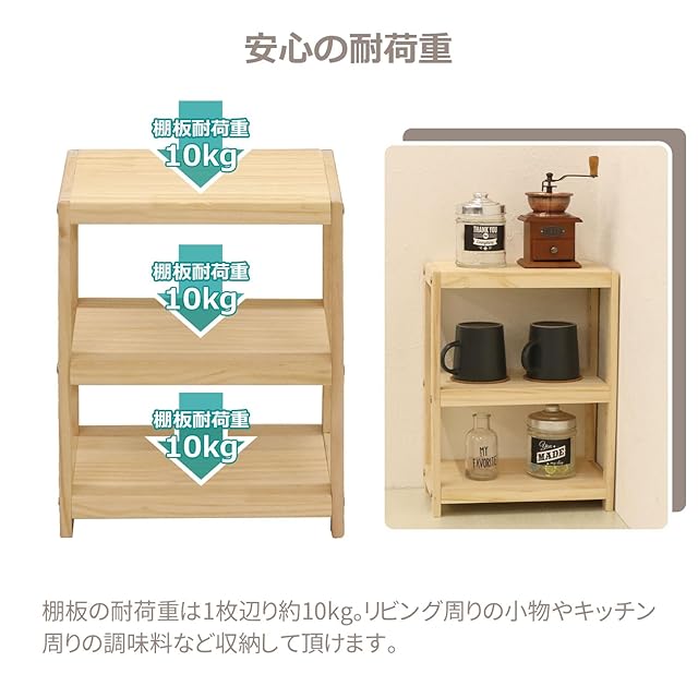 耐荷重(約):全体30kg、棚板10kg/枚