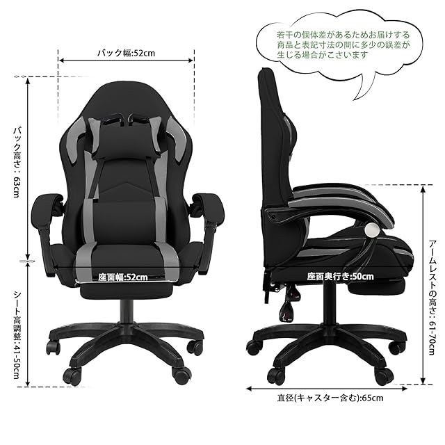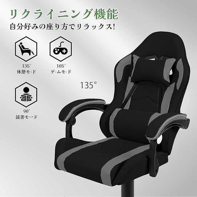 商品名:[GTboy] ゲーミングチェア げーみんくチェア ファブリック オットマン オフィスチェア パソコンチェア デスクチェア 椅子 通気性 蒸れない ゲーム用 人間工学 リクライニング 肘掛け付き (黒&グレー)