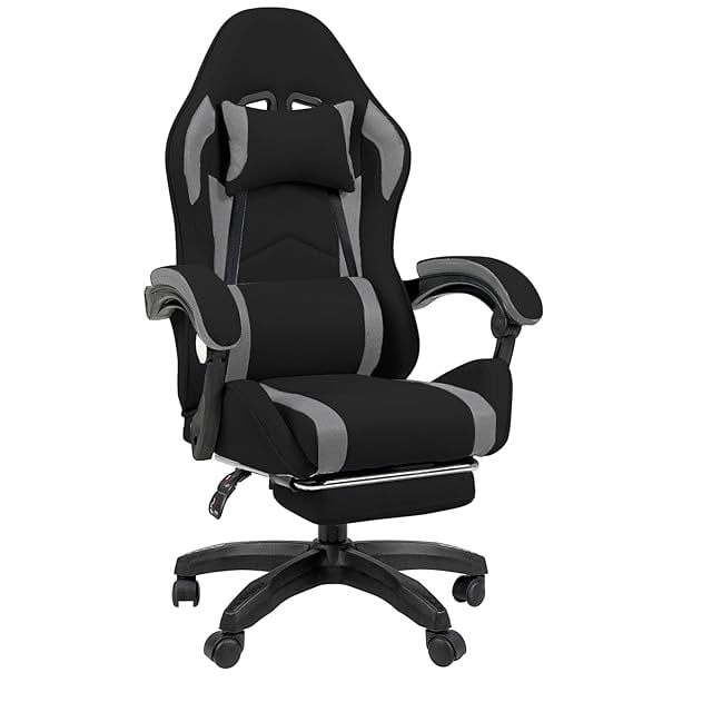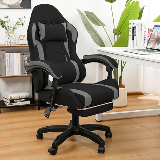 [GTboy] ゲーミングチェア げーみんくチェア ファブリック オットマン オフィスチェア パソコンチェア デスクチェア 椅子 通気性 蒸れない ゲーム用 人間工学 リクライニング 肘掛け付き (黒&グレー)