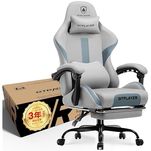 商品名:【3年付き】GTRACING ゲーミングチェア ファブリック デスクチェア 人間工学設計 腰痛対策 ポケットコイル 90°~150°リクライニング [一体式オットマン付き] 連動式アームレスト 蒸れない 高背もたれ ヘッドレスト&ランバーサポート 通気性メッシュ 高耐久性 GT905-GRAY