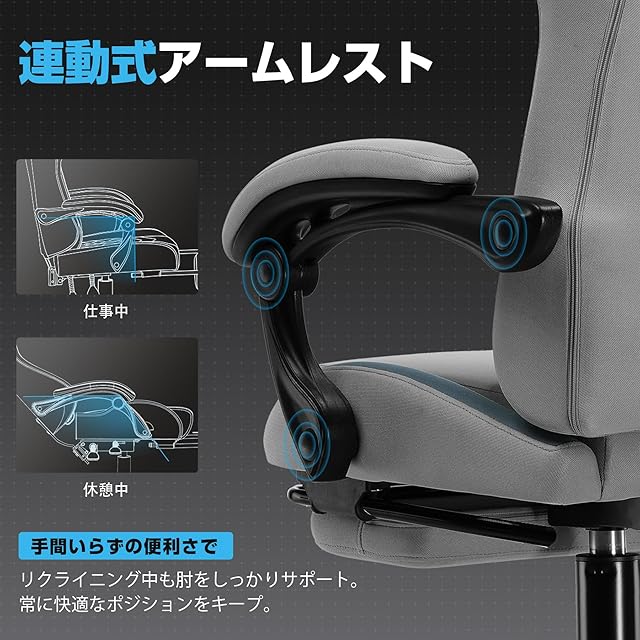 商品名:LUCKRACER ゲーミングチェア ファブリック 人間工学 腰痛対策 椅子 イス 90°~135°リクライニング テレワーク pcチェア デスクチェア 蒸れない 夏でも涼しい ソファーの座り心地 キルティング【一体式オットマン付き】ヘッドレスト&ランバーサポート 連動式アームレスト 通気性 GTBEE-GRAY