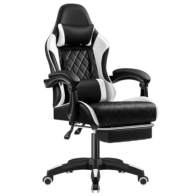 VICTONE ゲーミングチェア 連動式アームレスト オットマン付き ゲーム用チェア PCチェア リクライニングチェア オフィスチェア 改良座面 座り心地よい イス 椅子 テレワーク 疲れない (ホワイト,オットマンあり)