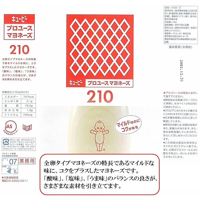 商品名:キユーピー 業務用 プロユースマヨネーズ210 1kg 大容量