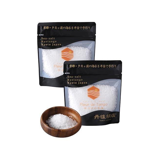 【丹後絹塩】京丹後市の夕日ヶ浦の海水から作られた旨みたっぷりの天然塩。ミネラルを豊富に含み、絹のような滑らかさで素材の旨味を引き立てます。職人こだわりの平釜製法作られた自然塩(しお)で、毎日の食卓を美味しく健康に。 希少な フルールドセル をご用意しました。