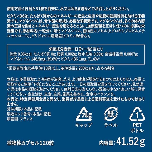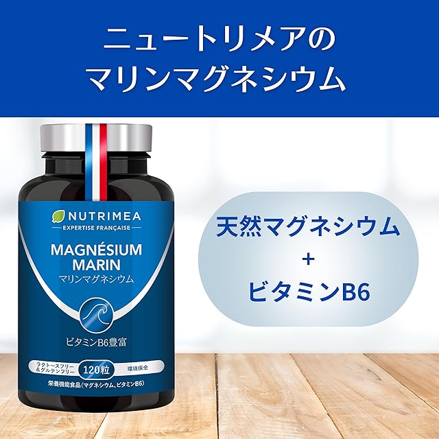 商品名:海水由来マグネシウム148.5mg & ビタミンB6 サプリ 4ヶ月分 120粒|植物性カプセル NUTRIMEA フランス製