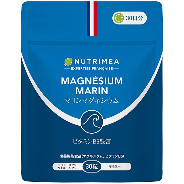 商品名:海水由来マグネシウム148.5mg & ビタミンB6 サプリ 1ヶ月分 30粒|植物性カプセル NUTRIMEA フランス製