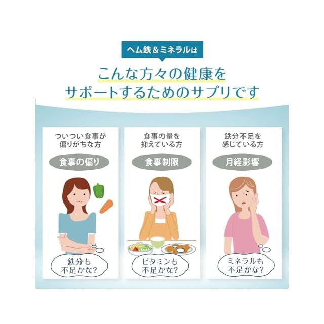 <b>【女性に必要なミネラルをギュッと凝縮!】</b><br>鉄分不足が気になる方へ。5大栄養素のうち特に摂取しづらく、女性に不足しがちな鉄・ミネラルやビタミンを1粒にギュッと凝縮しました。<br><br><b>【吸収性が高いヘム鉄を配合】</b><br>鉄は、食品からの吸収率が非常に悪い栄養素です。そこでフジフイルムは、鉄の中でも吸収性が高く体内に効率的に補給できるヘム鉄を配合しました。<br><br><b>【ヘム鉄って?】</b><br>鉄には、レバーや赤身肉などの動物性食品に含まれる“ヘム鉄”と、穀物や野菜などの植物性食品に含まれる“非ヘム鉄”の2種類があります。ヘム鉄は非ヘム鉄に比べ、5~6倍吸収が良いといわれています。ただでさえ鉄分は体内への吸収率が約10%ととても低いため、効率的に補給することがとても重要なのです。<br><br><b>【ミネラルは毎日摂ることが大切です。】</b><br>ミネラルは、鉄・カルシウム・マグネシウムなどの無機物のことをいいます。糖質・脂質・タンパク質・ビタミンとならんで、生体に欠かせない5大栄養素の1つです。このミネラルは体内で合成されることがないため、毎日バランス良く体外から摂取することが大切です。<br><br><b>【まとめて摂るのが効果的】</b><br>相性の良い栄養素をまとめて摂ると、成分同士がお互いの働きを助け合って作用します。たとえばビタミンB6・B12・葉酸は鉄の働きを助けてくれます。ビタミンDとマグネシウムはカルシウムの吸収を促してくれます。(“ヘム鉄&ミネラル”はカルシウムとマグネシウムを、体に良いとされる2:1で配合。)<br><br><b>【召し上がり方】</b><br>1日5粒を目安に多めの水またはぬるま湯と一緒にお召し上がり下さい。