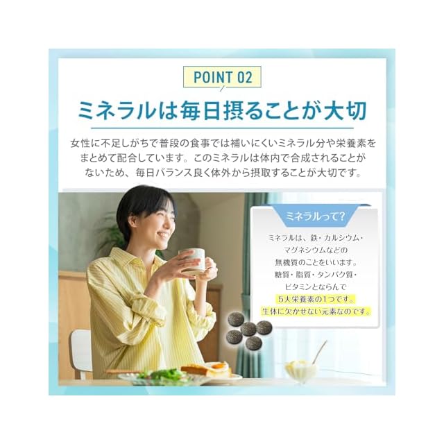 【女性に必要なミネラルをギュッと凝縮!】鉄分不足が気になる方へ。5大栄養素のうち特に摂取しづらく、女性に不足しがちな鉄・ミネラルやビタミンを1粒にギュッと凝縮しました。