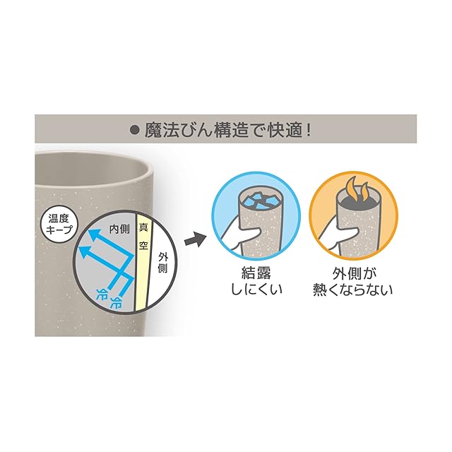 陶器調デザインの真空断熱タンブラー。内面セラミック加工で汚れがつきにくい。食洗機対応モデル。