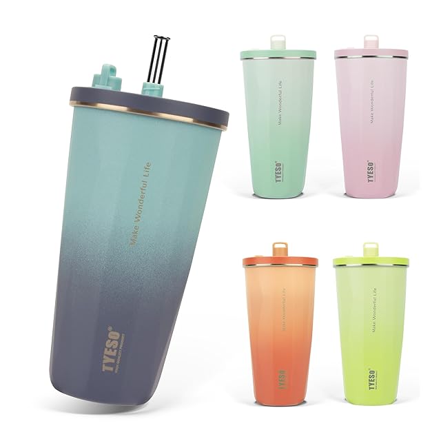 【SNSで話題】TYESO タンブラー ストロー付き 470ml ステンレス 蓋付き 真空断熱 保温 保冷 アウトドア 持ち運び便利 直飲み 漏れない 大容量 多色 トラベル 2025年アップグレード版