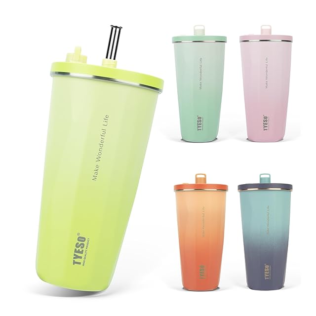 【SNSで話題】TYESO タンブラー ストロー付き 470ml ステンレス 蓋付き 真空断熱 保温 保冷 アウトドア 持ち運び便利 直飲み 漏れない 大容量 多色 トラベル 2025年アップグレード版