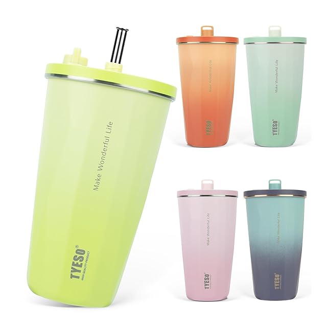 【SNSで話題】TYESO タンブラー ストロー付き 600ml ステンレス 蓋付き 真空断熱 保温 保冷 アウトドア 持ち運び便利 直飲み 漏れない 大容量 多色 トラベル 2025年アップグレード版