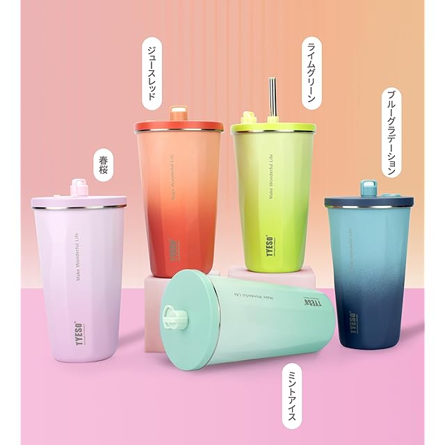 商品名:【SNSで話題】TYESO タンブラー ストロー付き 600ml ステンレス 蓋付き 真空断熱 保温 保冷 アウトドア 持ち運び便利 直飲み 漏れない 大容量 多色 トラベル 2025年アップグレード版