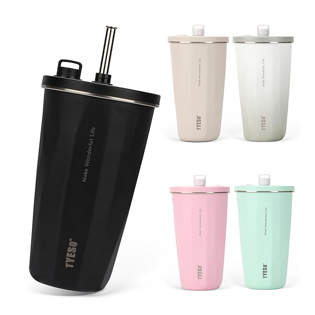 【SNSで話題】TYESO タンブラー ストロー付き 600ml ステンレス 蓋付き 真空断熱 保温 保冷 アウトドア 持ち運び便利 直飲み 漏れない 大容量 多色 トラベル 2025年アップグレード版