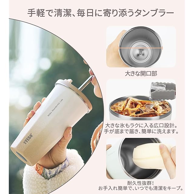 広口デザインで洗浄簡単:広口設計により、このタンブラーは底まで手が届きやすく、内部を簡単に隅々まで洗浄できます。コーヒーやお茶の汚れ、臭いが残らず、いつでも清潔に使用できるタンブラーです。清掃が簡単で、使用後の手間も少なく、毎回新鮮な飲み物を楽しめます。