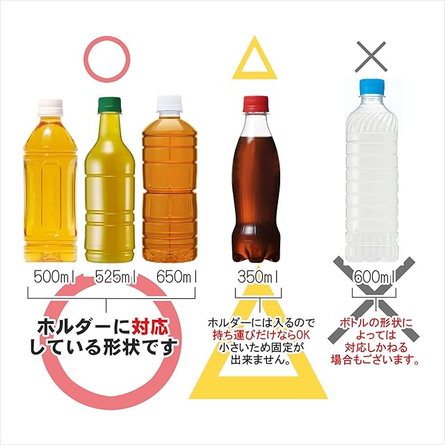 ◎500mlから650mlサイズのペットボトルに対応しています。※ペットボトルのサイズによっては、使用できないことがございます。予めご了承ください。