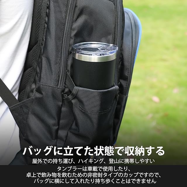 【使用場面】蓋の開閉がスムーズなので、お手入れも簡単!オフィス、自宅、学校、居酒屋などの所で手軽にコーヒーや紅茶などホットあるいはアイスの飲み物を楽しみましょう。注意:タンブラーは車載で使用したり、卓上で飲み物を飲むための非密封タイプのカップですので、バッグに横にして入れたり持ち歩くことはできません。バッグなどに入れる際は、本体を縦置きにしてくださいませ。