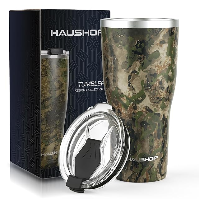 HAUSHOF 真空断熱タンブラー ステンレス ふた付き 600ml 車用タンブラー コーヒーカップ マグボトル ステンレスコップ コンビニマグ ビール 直接ドリップ 直飲み 保温保冷 家庭用 車載用 アウトドア用 釣り 遠足登山 キャンプ バーベキュー 【Veilとのコラボカップ】【迷彩 グリーン】