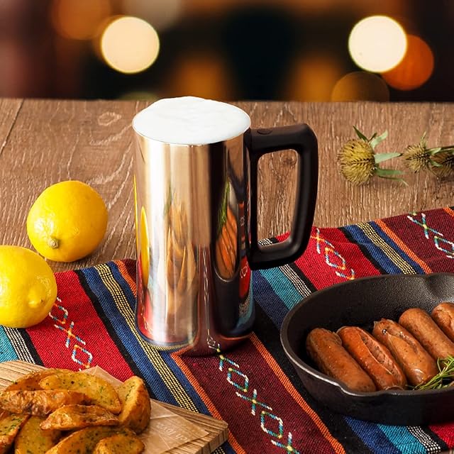外面を鏡面仕上げにした高級感ある真空断熱構造のビアジョッキ!保冷効果で冷たさが長持ち!