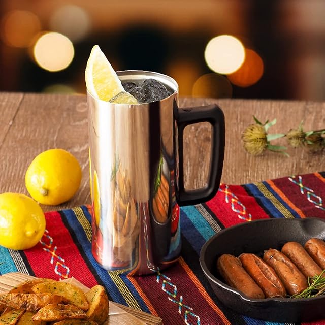 外面を鏡面仕上げにした高級感ある真空断熱構造のビアジョッキ!保冷効果で冷たさが長持ち!