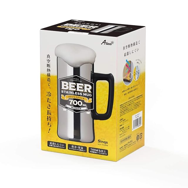 商品名:アトラス ビールジョッキ 真空断熱 お酒 ハイボール ステンレス タンブラー 大容量 700ml ASJ-702MR