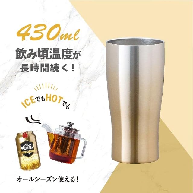 商品名:アトラス 保温保冷 ステンレス タンブラー 430ml グラデーションゴールド 真空断熱 お酒 ハイボール ASTG-433GO