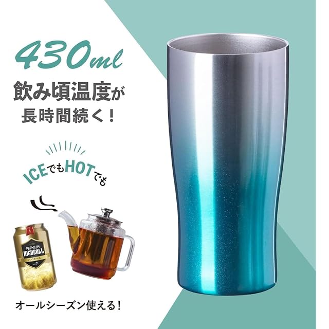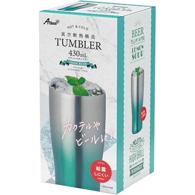 商品名:アトラス 保温保冷 ステンレス タンブラー 430ml グラデーションソーダブルー 真空断熱 お酒 ハイボール ASTG-433SB