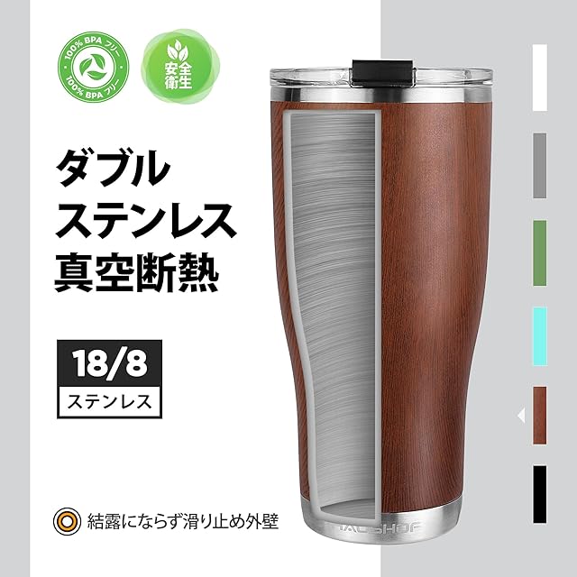 【厳選された材質&BPAフリー】本体は18/8ステンレス鋼で作られ、錆びにくくて耐久性に優れています。結露にならず、熱い飲み物を入れても外側が熱くなりません。蓋はBPA材料を使用せず、無害・無毒であり、安心してご利用いただけます。